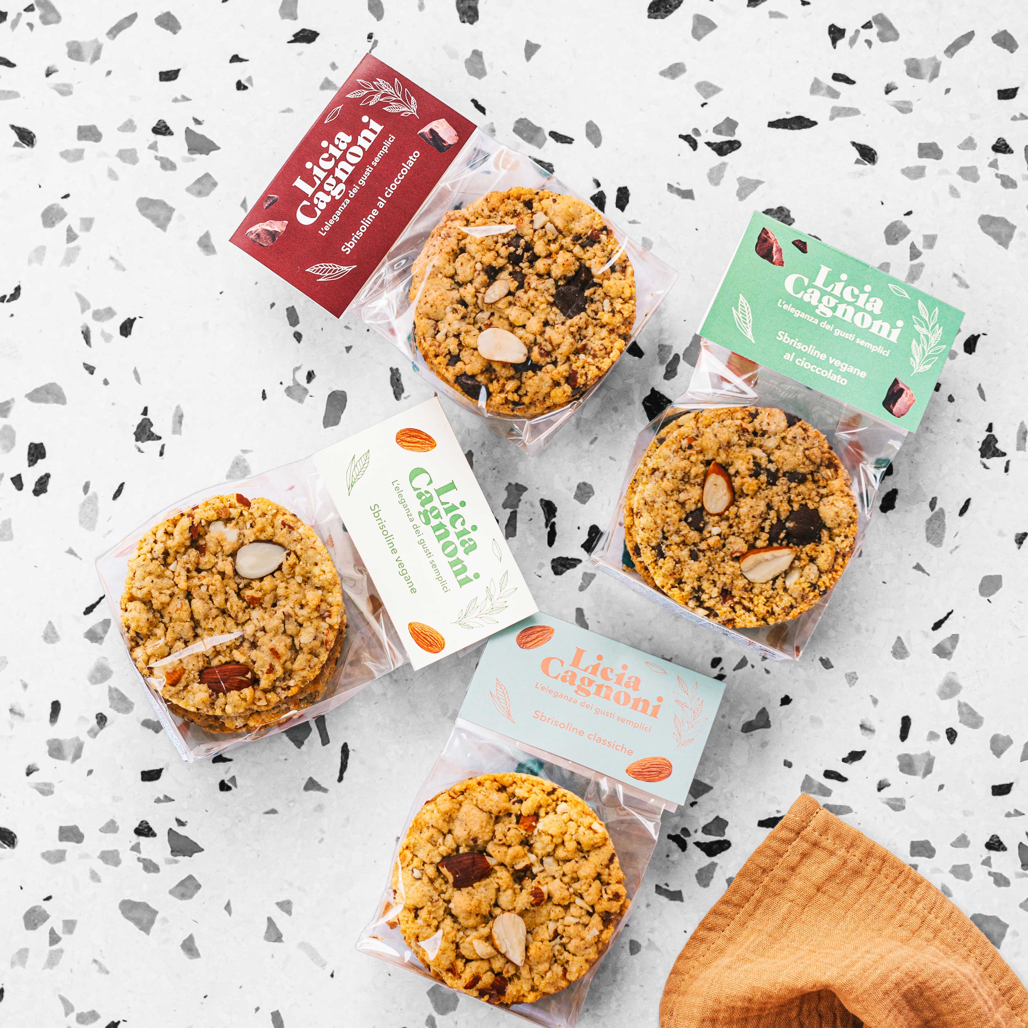 Licia ha saputo reinterpretare la tradizionale Sbrisolona in chiave moderna ed elegante, offrendo due varietà per soddisfare ogni gusto. Le Sbrisoline classiche e classiche al cioccolato sono il perfetto connubio tra croccantezza e dolcezza, mentre le versioni vegane classiche e vegane al cioccolato permettono di gustare la stessa bontà senza ingredienti di origine animale, mantenendo intatto il sapore e la qualità.