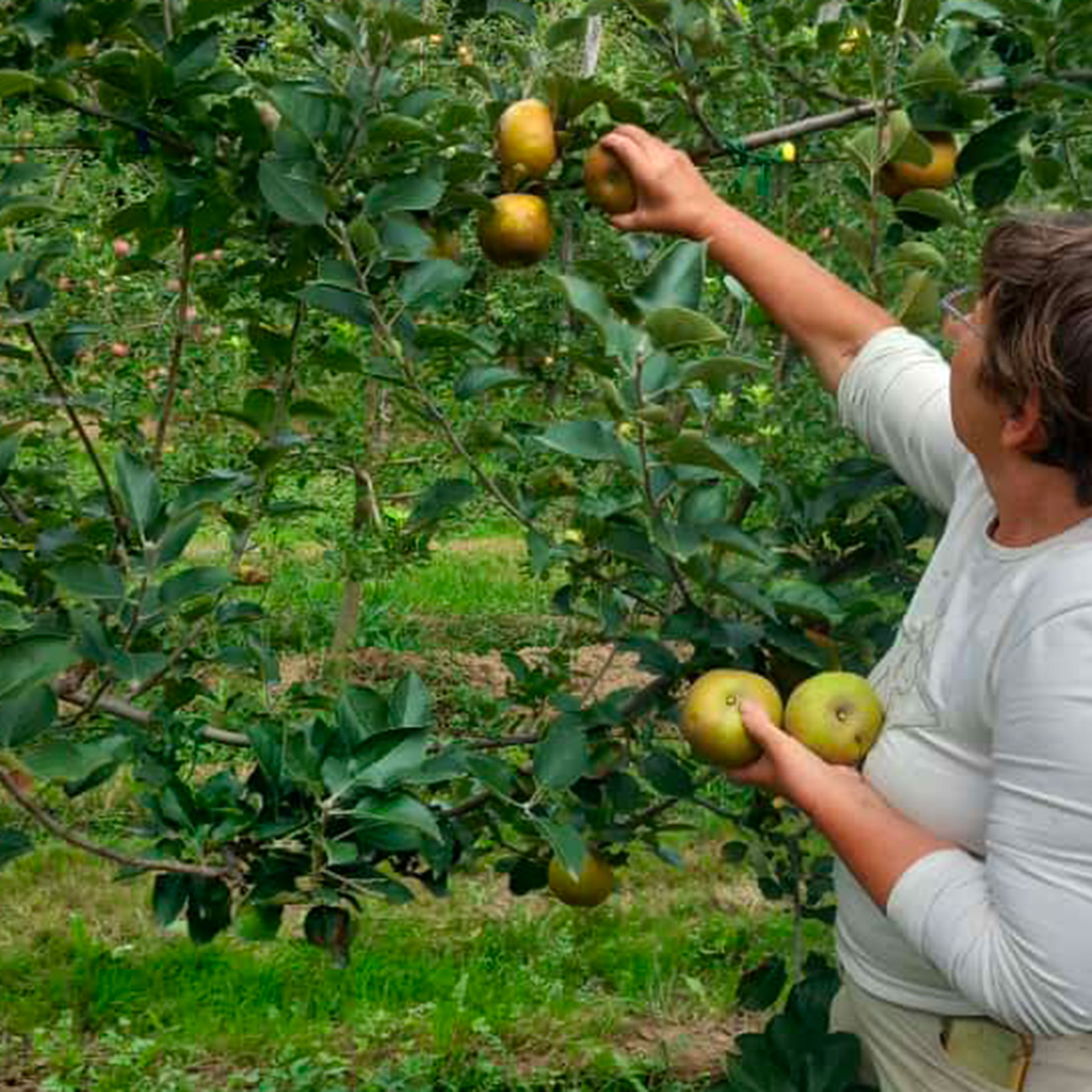 Coltivazione di frutta bio e Antiche Mele Piemontesi Bio, Presidio Slow Food; trasformazione anche in composte e succhi bio. Lusernetta, Torino.